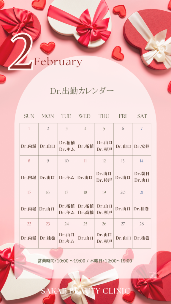 2月ドクター出勤カレンダー公開のお知らせ