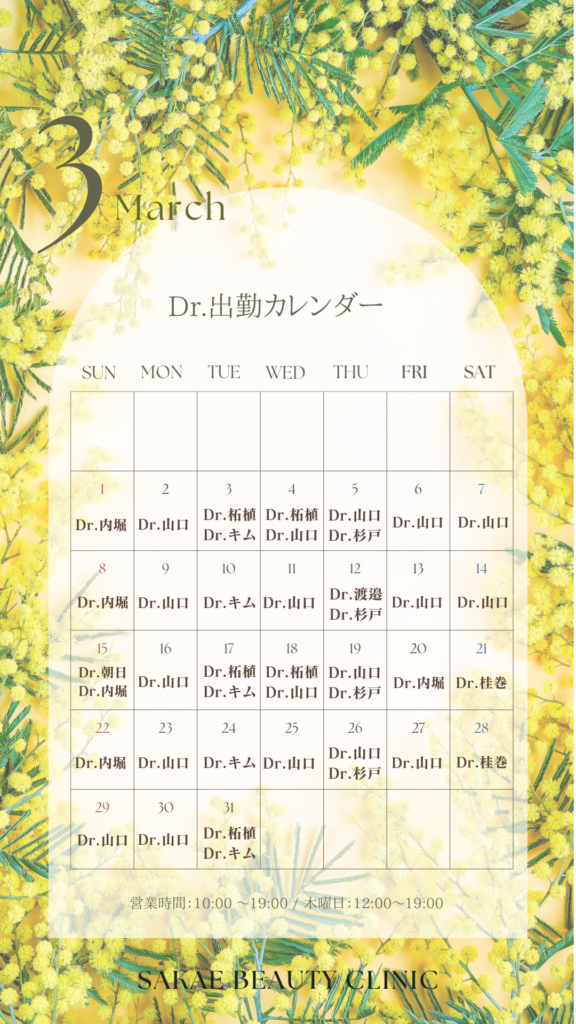 3月ドクター出勤カレンダー公開のお知らせ