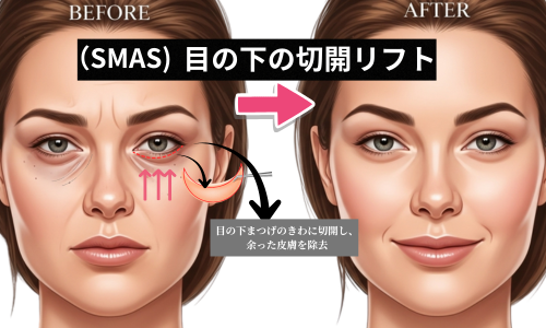 目の下の脂肪取り・クマ取り+切開リフト+脂肪移動
