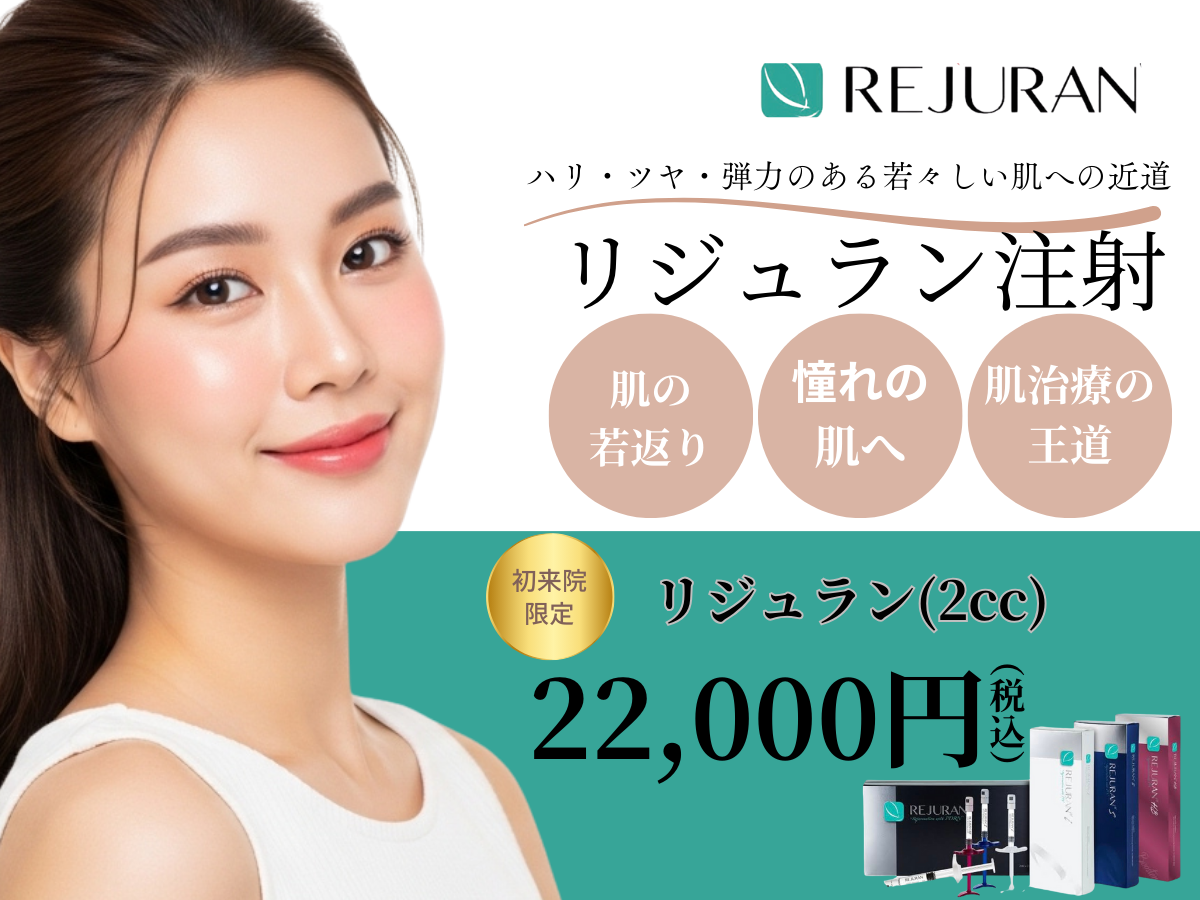 当院では、リジュラン注射という最先端の美容治療を提供しています。リジュラン注射は、サーモンから抽出された自然由来の成分を皮膚に注入することで、肌の再生力を高めて老化による様々な肌トラブルを改善する治療です。リジュラン注射は、肌に水分と栄養を与えるだけでなく、肌そのものの弾力やハリを回復させる効果があります。リジュラン注射は、自然な若返りを求める方におすすめです。