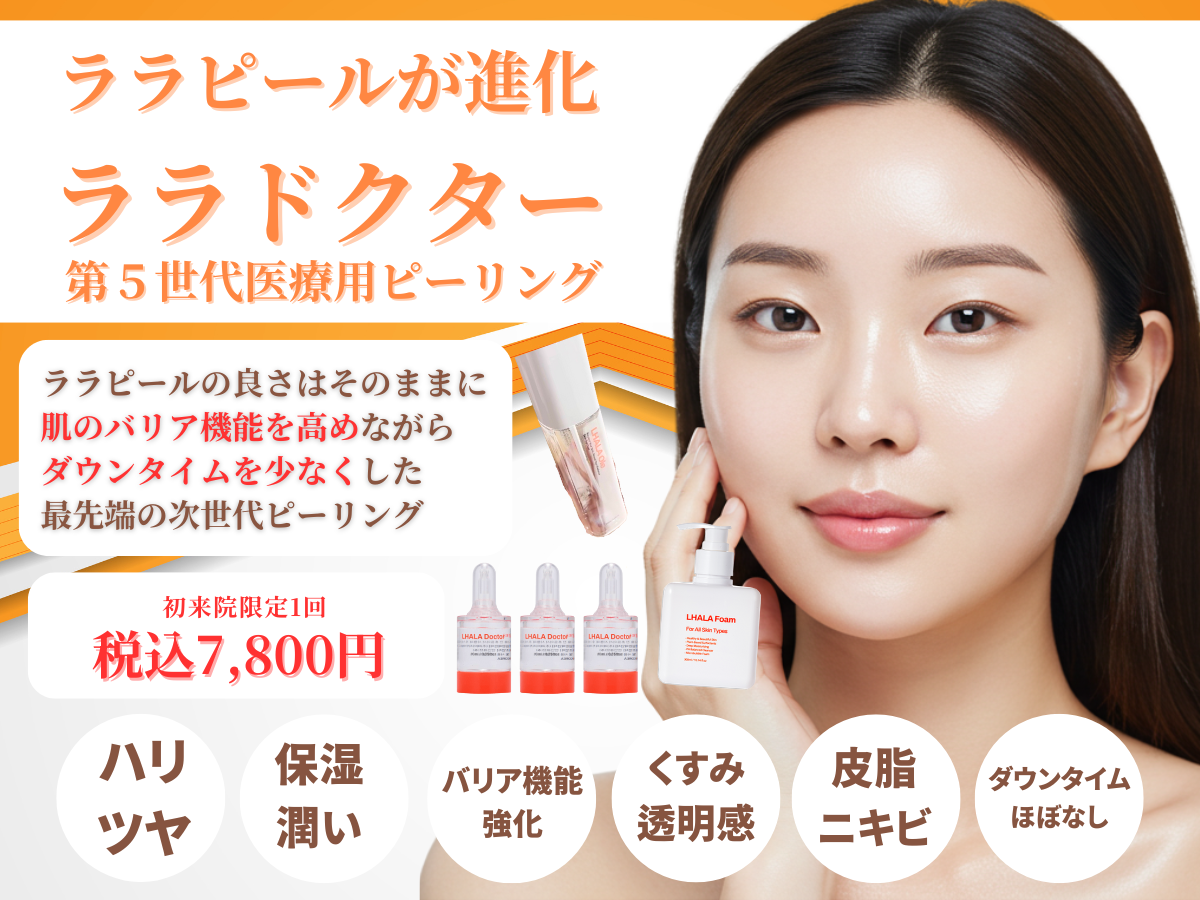 ララドクターは第五世代ピーリングで、ララピールの進化版。より効果的で刺激が少ない施術です。